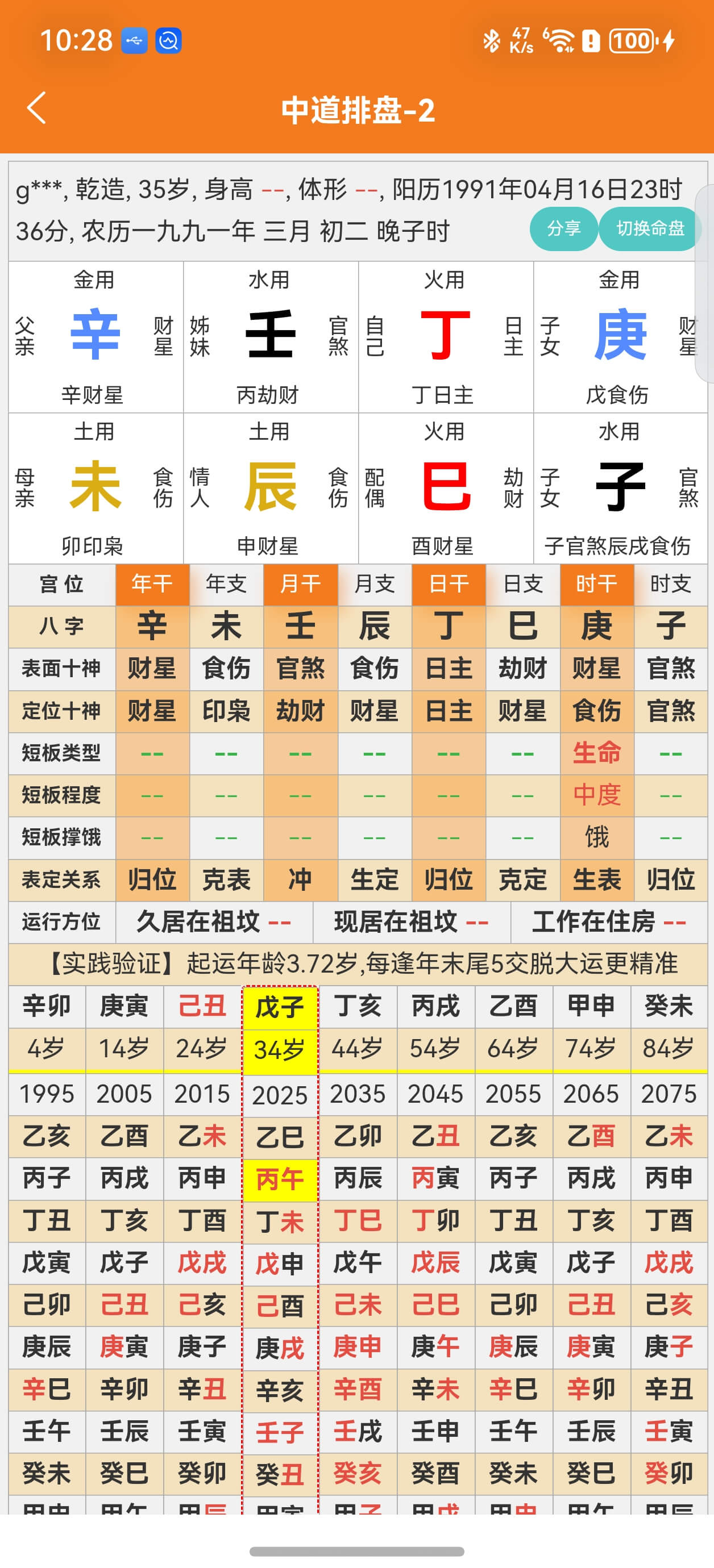 中道排盘支持公历、农历和甲子历排盘,支持真太阳时时间校对,支持年月日时四柱、大运、流年、流月、流日、流时排盘。